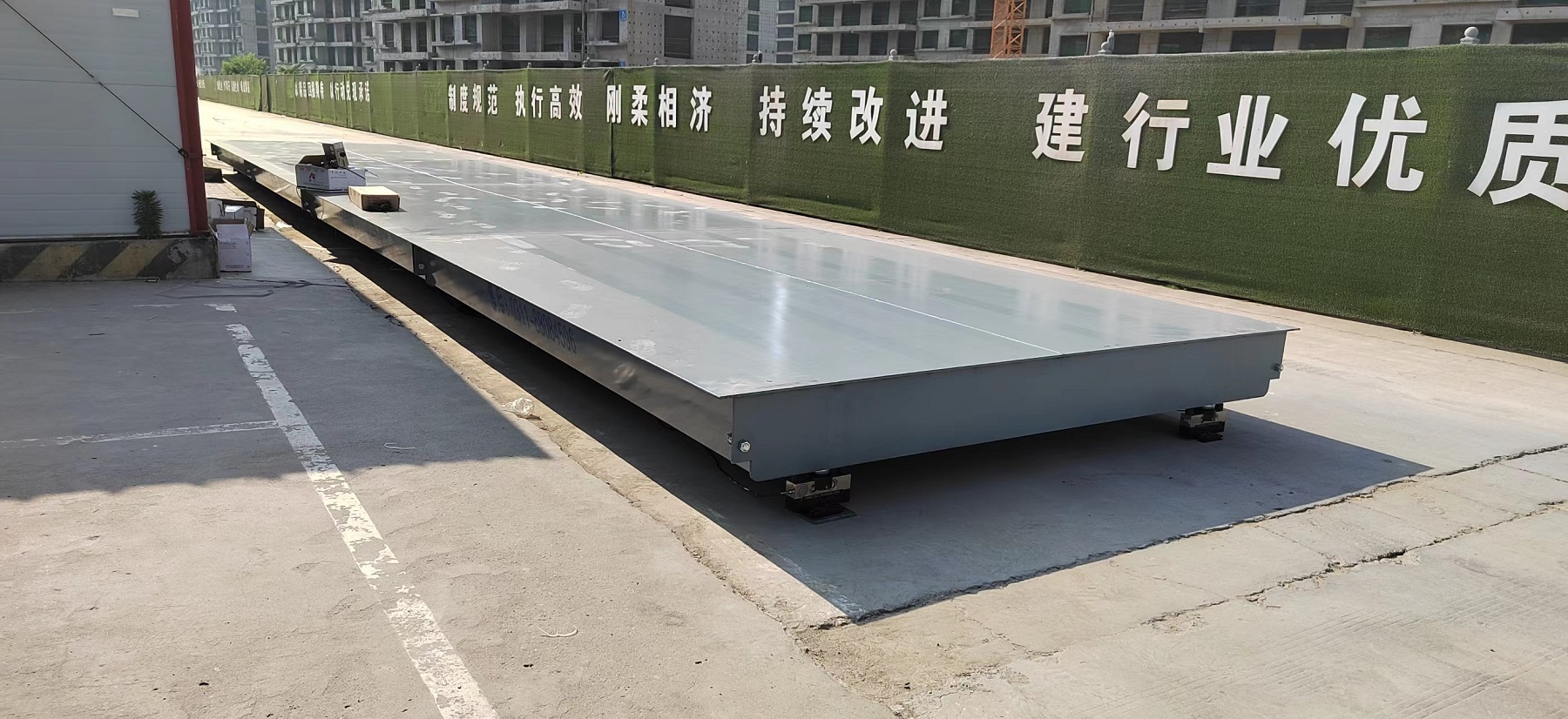 石家莊囯赫控股,古城西路囯赫天璽工地項(xiàng)目,3x16米100噸地磅安裝完畢,硬化路面安裝,后做坡道,簡單快捷.